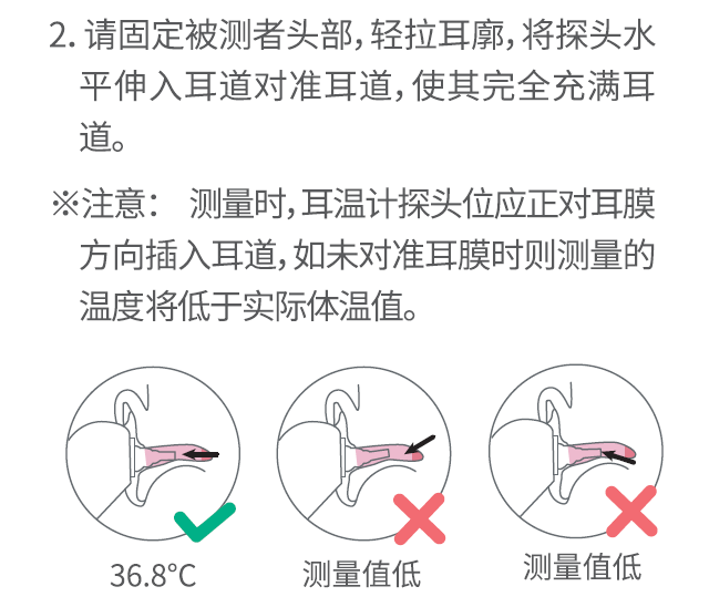 由于耳溫槍是測量鼓膜的溫度,而人體的耳道是彎曲的,測量時需要拉直耳道,才能測量出鼓膜的溫度,否則容易造成偏差。